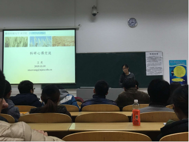 报告伊始,主持首先对王笑老师和杨海水的到来表示了热烈欢迎,接着介绍了王笑老师和杨海水老师的基本情况。王笑老师与同学分享了自己的科研心得交流,杨海水老师分享了自己关于科研的一点点体会。
