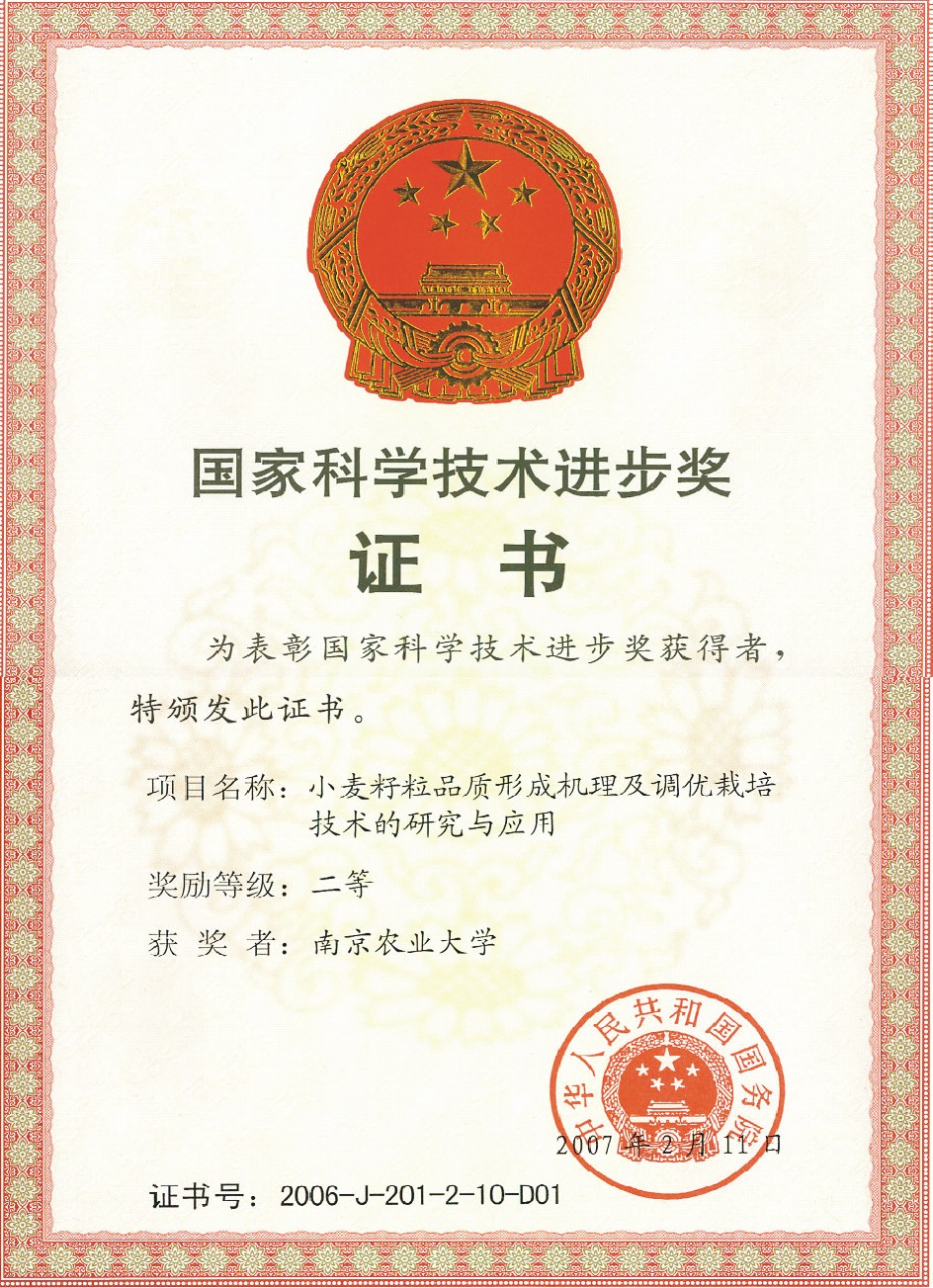 成果名称:优质专用小麦籽粒品质形成机理及调优技术的研究与应用
