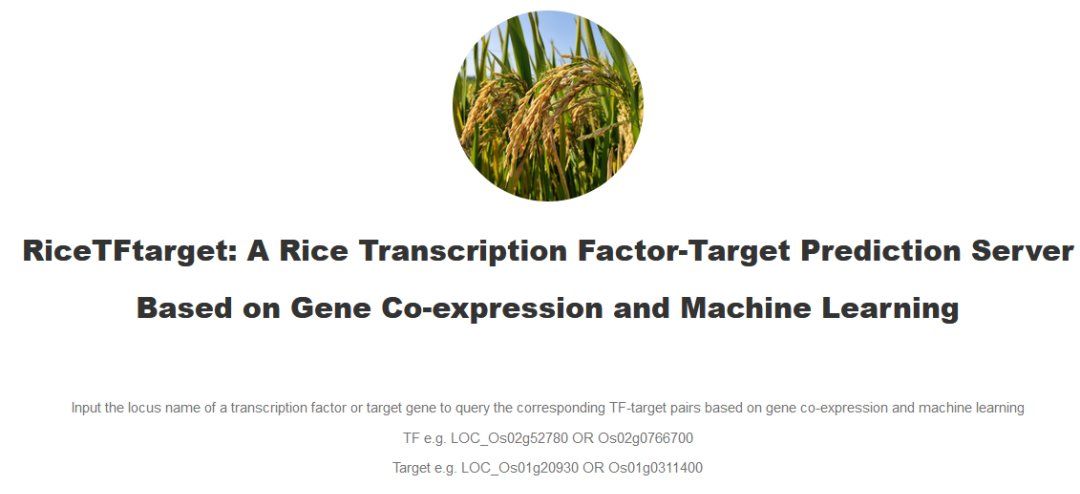 RiceTFtarget访问网址:https://cbi.njau.edu.cn/RiceTFtarget/