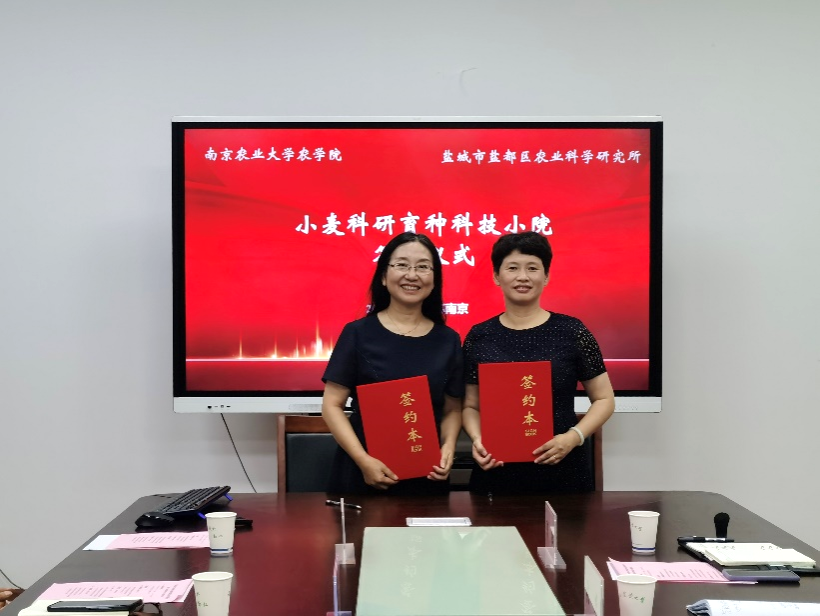 王秀娥教授代表william威廉亚洲官方与盐都区农业科学研究所所长郭红共同签署了小麦遗传育种科技小院共建协议。