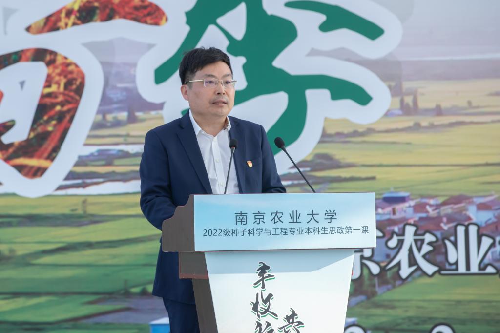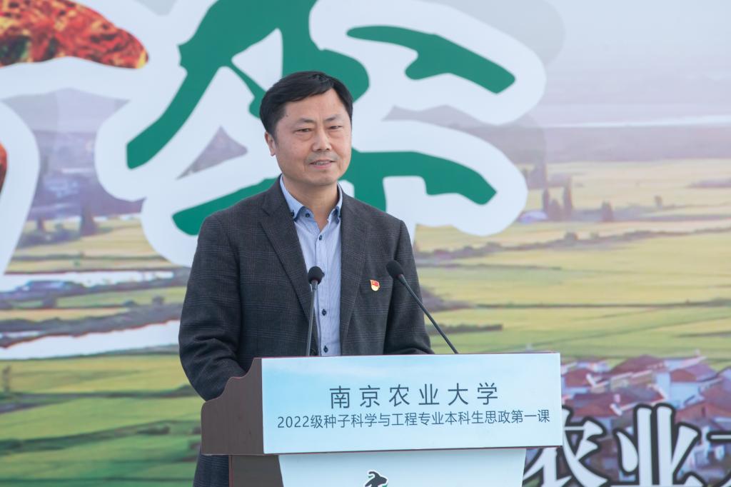 威廉希尔中文网站平台党委书记陈利根为新生带来《用奋进的青春汗水 浇灌强农兴农之种》思政第一课。陈利根从国家种业现状谈起,强调了粮食安全这一“国之大者”,以及种子作为农业的“芯片”的重要性,只有把种子紧紧攥在手中,才能端好、端稳中国饭碗,牢牢把住粮食安全主动权。