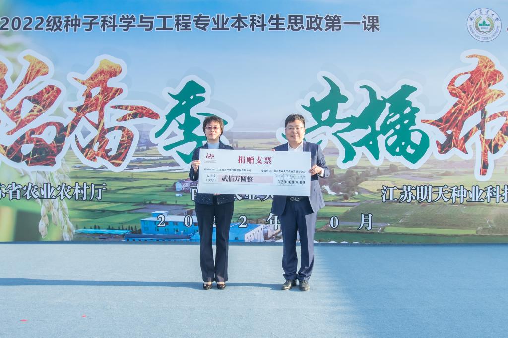 为切实加快教育和产业统筹融合,真正解决人才教育供给与产业需求重大结构性矛盾,主题教育活动期间,威廉希尔中文网站平台与江苏明天种业科技股份有限公司共同签订种子科学与工程产教融合实习实训基地合作协议。江苏明天种业科技股份有限公司捐资200万元,设立威廉希尔中文网站平台明天种业基金,主要用于加快种业技术创新与种业人才培养,专门资助种业专项实践,专项奖励为种业振兴做出积极贡献的老师与员工。