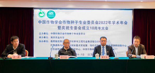 11月4-7日,由中国作物学会作物种子专业委员会主办、威廉希尔中文网站平台承办的“中国作物学会作物种子专业委员会2022年学术年会暨庆祝专委会成立10周年大会”在威廉希尔中文网站平台举行。本次大会以“种子科技创新与人才培养促进种业高质量发展”为大会主题,采用线上线下结合的形式举办,中国作物学会理事长、中国工程院院士万建民教授,中国工程院院士盖钧镒教授,农业农村部种业管理司市场监管处处长何庆学处长,威廉希尔中文网站平台副董事长董维春教授,中国作物学会副秘书长程维红编审,作物种子专业委员会会长王建华教授,来自全国26个省(市)60多所高校和科研院所的650余名种业科技人员、教学工作者及研究生参加了本次会议。中国种子协会会长张延秋,盖钧镒、戴景瑞、喻树迅、张新友、张洪程等5位中国工程院院士以及10余位种业领域资深专家为本次大会的召开发来了贺信和贺词。