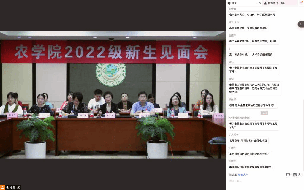 随后,新生及新生家长自由提问,“专业前景如何”“孩子未来发展空间如何”“孩子能参加什么样的活动锻炼综合能力”“智慧农业未来主要做什么”“如何参加导师制”……通过网络互动,留言区的员工、员工家长表达了对专业、对学院、对员工发展的关心与期待,学院领导一一细心作答。