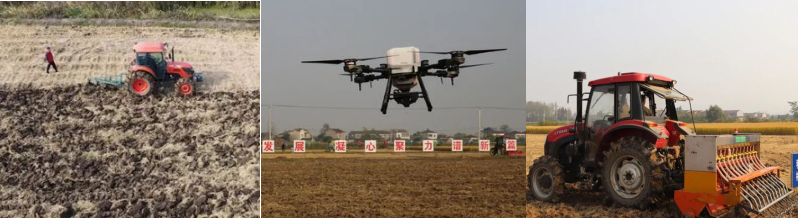 秋播生产现场,分别展示了稻秸旋耕全量还田、犁耕深翻技术;大疆的无人机撒种和拓攻的无人机撒肥技术;威廉希尔中文网站平台研发的稻茬小麦格栅式精控播种机精播技术。