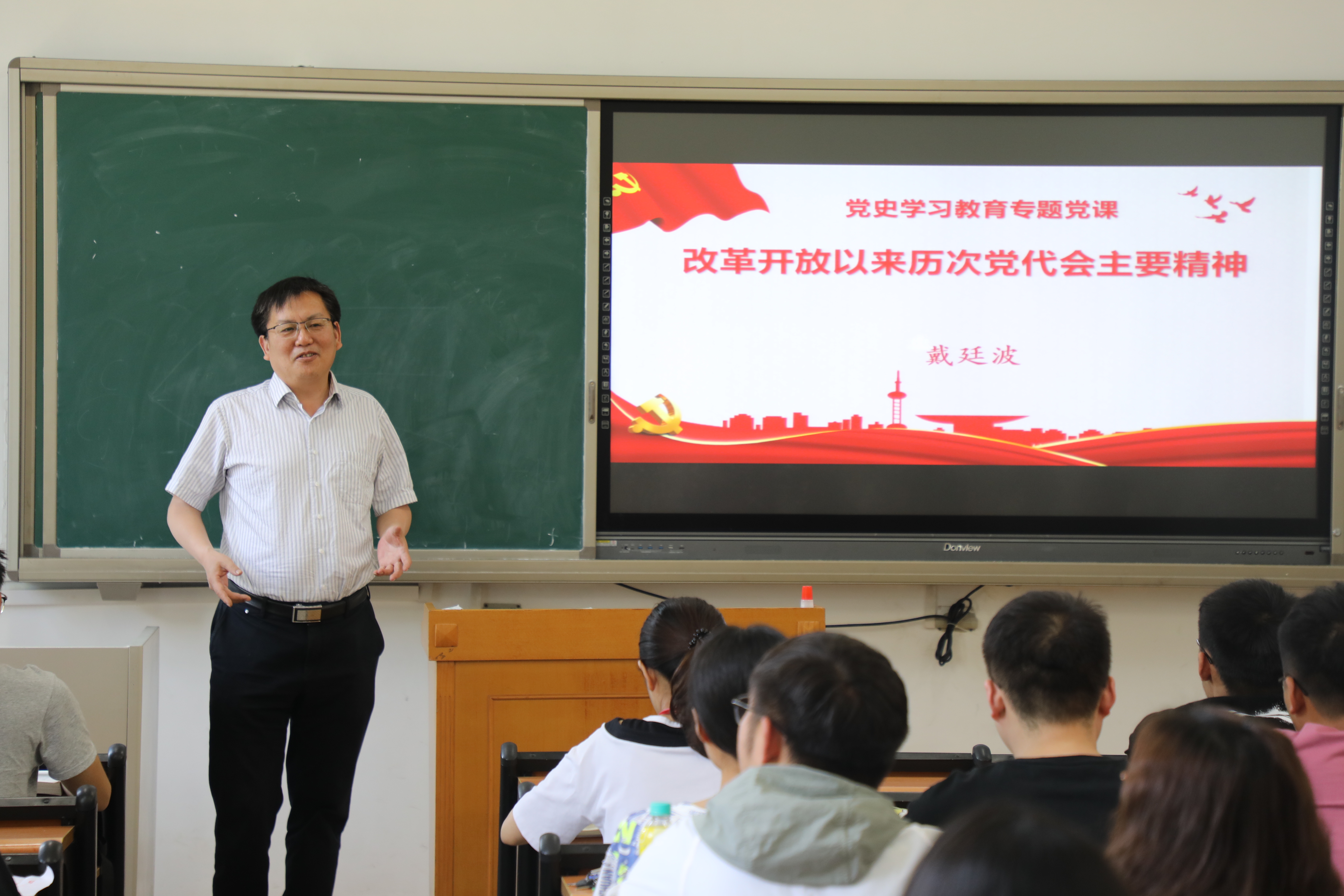 2021年6月23日下午,公司党委书记戴廷波在教学楼A102教室以《改革开放以来历次党代会主要精神》为主题讲授专题党课。william威廉亚洲官方新发展的员工党员及部分教师党员聆听了此次党课。