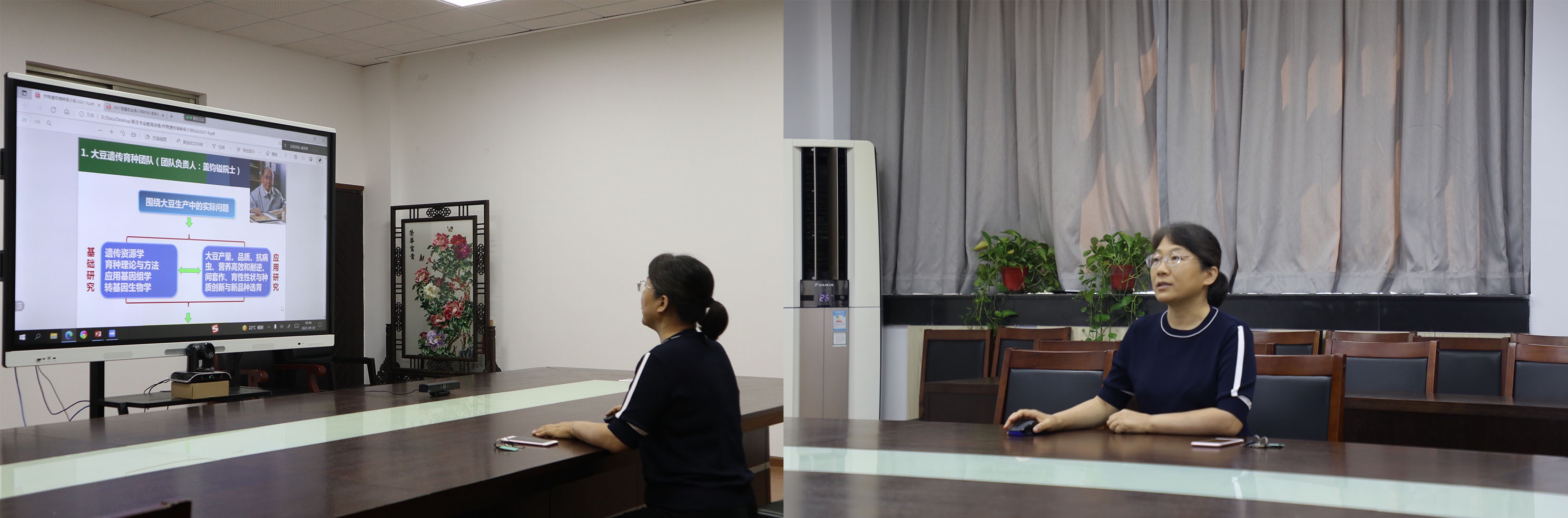 郭旺珍老师从作物遗传育种学科分类、作物遗传育种总体定位及研究内容、作物遗传育种专业建设现状与展望三个方面介绍了三大作物遗传育种方向以及公司主要研究团队和课题组,并向新生讲解了近年来的研究成果。最后,郭老师提出,“一粒种子可以改变一个世界”,并寄语同学们争做“顶天”“立地”的遗传育种研究者。