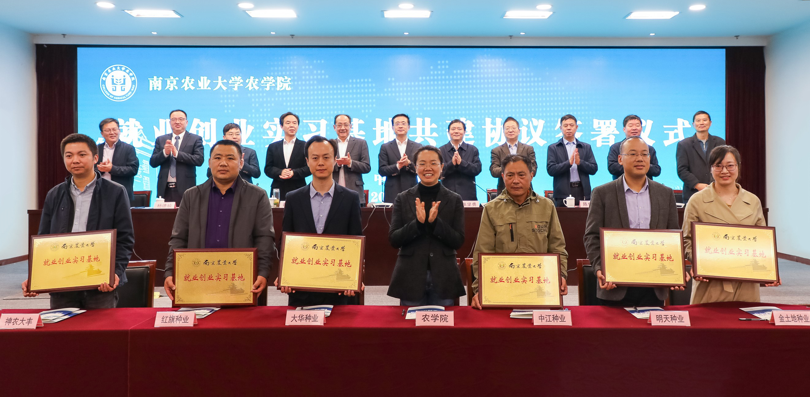 党委副书记殷美代表william威廉亚洲官方与六家企业签署了老员工就业创业实习基地共建协议,并颁发了就业创业共建基地铜牌。接着,举行了江苏省现代农作物种业人才基金颁奖典礼,20位优秀在校生和18位种业企业人才分别获得人才奖、成才奖和突出贡献奖。