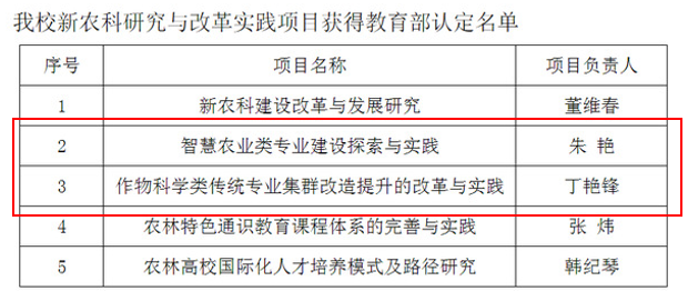 近日,教育部办公厅下发了《关于公布新农科研究与改革实践项目的通知》(教高厅函〔2020〕20 号),公司申报的2个项目全部获得认定,占学校总项目数的40%。