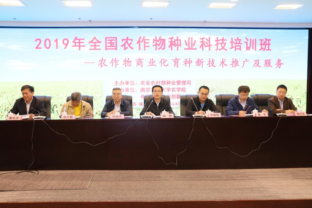 2019年11月3-8日,由农业农村部种业管理司主办、威廉希尔中文网站平台承办的“2019年全国农作物种业科技培训班”在威廉希尔中文网站平台学术交流中心成功举办。农业农村部种业管理司品种创新处二级调研员厉建萌、威廉希尔中文网站平台副董事长胡锋教授、江苏省农业农村厅种业管理处处长何旭平、威廉希尔中文网站平台科学研究院常务副经理姜东等以及来自12个省(市)近60家种子企(事)业单位90多名种业科技和管理人员出席开班仪式。威廉希尔中文网站平台公司党委书记戴廷波主持仪式。