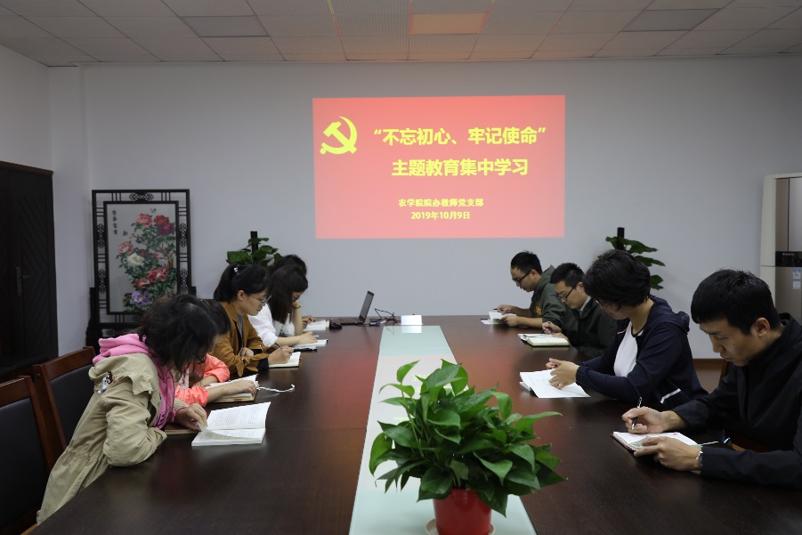 会议首先由支部书记马丽琴带领支部成员学习了《习近平关于“不忘初心、牢记使命”论述摘编》中“中国共产党人的初心和使命,就是为中国人民谋幸福,为中华民族谋复兴”篇目。她强调学校开展“不忘初心、牢记使命”主题教育,是以习近平同志为核心的党中央,在新形势下始终坚持思想建党、理论强党的有力举措。她希望支部成员坚定理想信念,不断增强“四个意识”、坚定“四个自信”、做到“两个维护”,进一步统一思想共识。