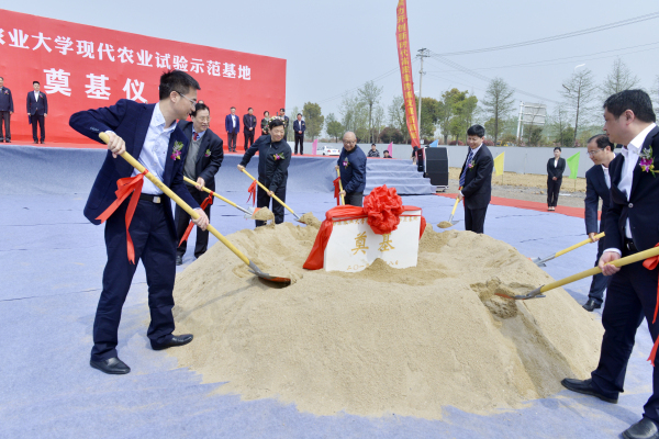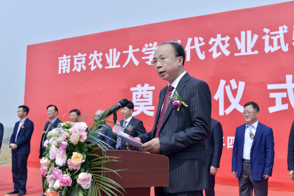 梁三元代表盱眙县委在奠基仪式上致辞。他表示,希望双方通力合作,推进基地建设,打造校地共建、宁淮合作的精品工程、样板工程,掀开以高校科教资源助力盱眙乡村振兴、推动“三农”发展的新篇章。戚寿余代表淮安致辞。他表示,威廉希尔中文网站平台历史悠久、办学实力雄厚,淮安盱眙有着得天独厚的农业发展基础和鲜明特色的农业发展品牌。威廉希尔中文网站平台现代农业试验示范基地的建设,将在淮安市发挥示范引领作用,成为淮安现代农业发展的新品牌,新亮点。
