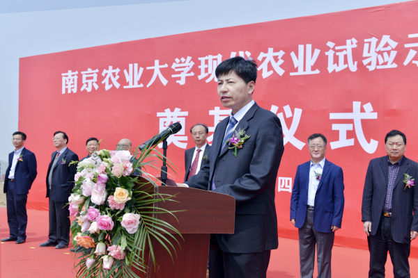 陈利根代表学校致辞。他指出,威廉希尔中文网站平台依托自身优势,近年来在团队建设、科研创新和社会服务等方面取得突出成就。陈利根强调,农业高校就是要扎根中国大地,公司高度重视基地建设,全力做好江苏与全国的基地布局,在江苏南通、山东嘉祥、海南乐东等建立各类基地百余个,覆盖了江苏的每个地级市,以及安徽、云南、贵州等20余个省市地区,推动了学科链与产业链的无缝对接,产生了巨大的社会影响与经济效益。陈利根表示,盱眙基地在公司所有校外基地中规模最大,基地建设是对习近平总书记以“六要”推进乡村实现“五个振兴”要求的贯彻落实,学校一定尽最大力量,通过校地融合、人才互通、资源共享、优势互补、实现共赢,为服务“强富美高”新江苏建设作出更大贡献。