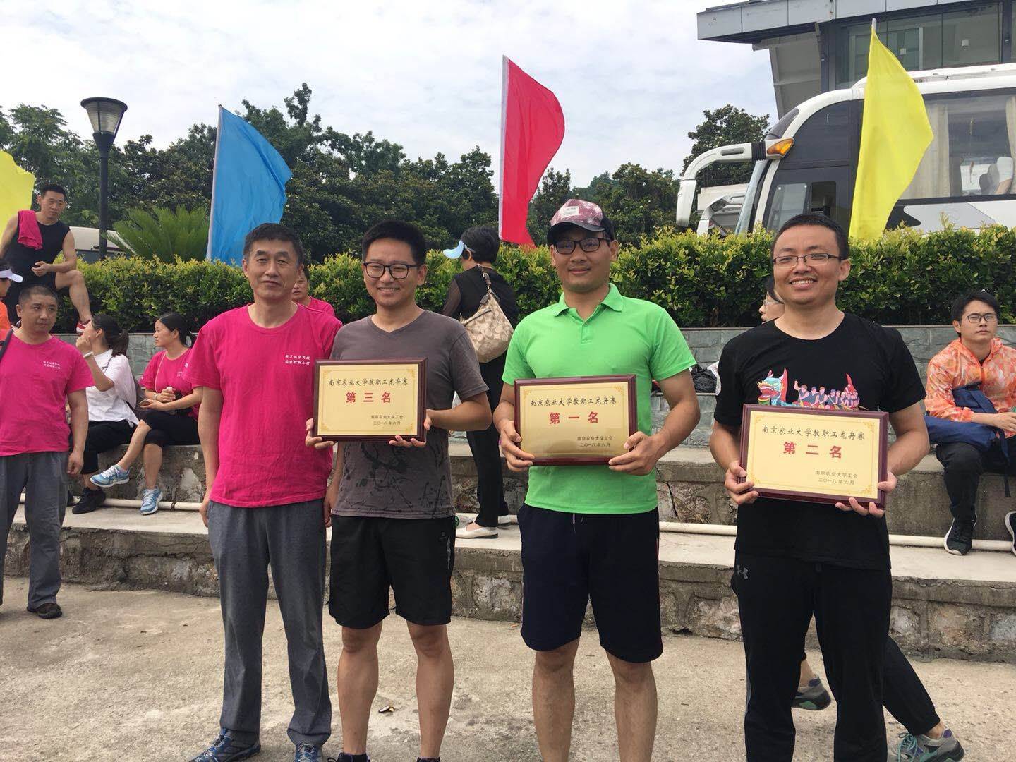6月2日,由威廉希尔中文网站平台工会主办,图书馆工会承办的2018年教职工龙舟赛在玄武湖水上运动学校举行。来自校机关、图书馆、资产与后勤、william威廉亚洲官方、植保院、资环院、园艺院等11支队伍参加了此次比赛。william威廉亚洲官方精心组织,积极参与,选拔了15名职工参加了比赛。