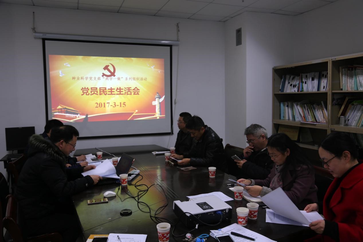 2017年3月10日和15日,种业系支部在理科楼D701会议室召开“两学一做”专题组织生活会和民主评议党员工作会,会议由种业系支部书记刘康同志主持。会上首先宣读了《关于在“两学一做”学习教育中召开专题组织生活会和开展民主评议党员的通知》,并对种业系支部如何贯彻落实好学习教育活动做了具体安排。接着,集体学习了《关于新形势下党内政治生活的若干准则》、《中国共产党党内监督条例》,学习了“四讲四有”的规范和要求,强调每一名共产党员都要以“四讲四有”为标准,努力争做政治合格、信念坚定;严守规矩、纪律严明;道德高尚、品行端正;奉献担当;敢为善为的合格党员。