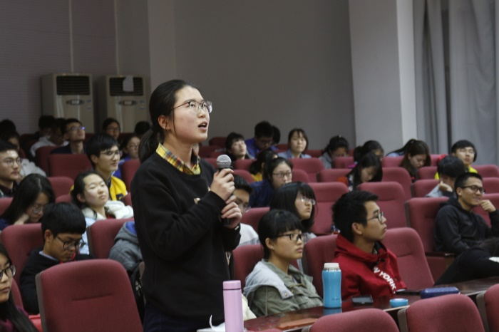 在陈老师形象生动的描述下,同学们认识了一位既有科学家的严谨与专注,又有普通人的温情与可爱的金善宝先生。陈佩度老师张弛有度、真诚又不失风趣的演讲风格,引得大家不时哈哈大笑,全场数次掌声雷动、气氛热烈。