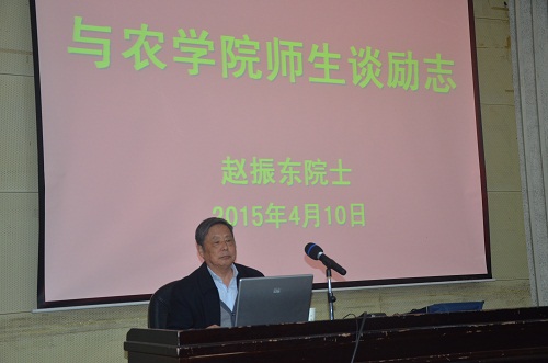 本次报告,赵院士围绕“励志”,通过对大学学习、在新疆生产建设兵团农场深入粮食生产第一线、小麦育种研究刻苦钻研等人生各个阶段的回顾和感悟,将自身对人生价值、科学研究、农业生产的认识做了深入的剖析。