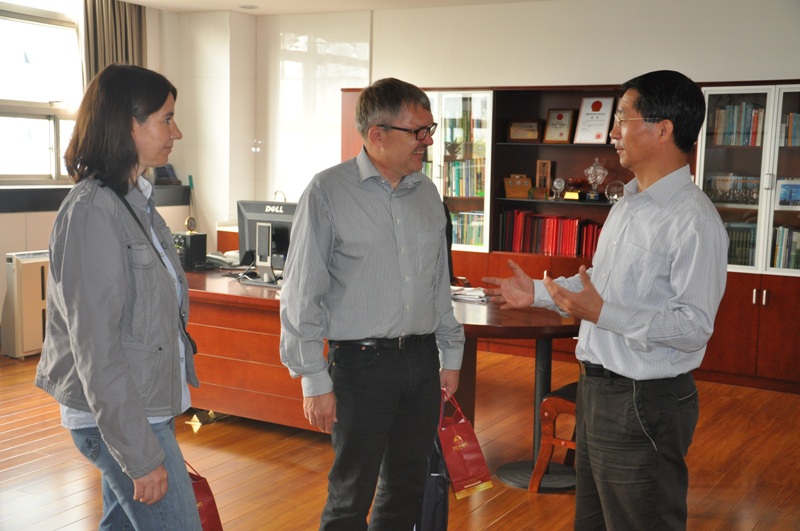 在国家信息农业工程技术中心,朱艳和姜东向Olesen教授一行详细介绍了中心建设和发展的基本情况,并陪同参观了中心的实验室、研究生学习室、图书室等设施。Olesen教授饶有兴致地观看了中心的基本实验设备,并就相关问题进行了交流。