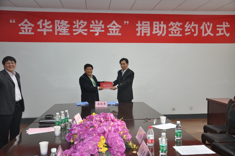 戴廷波与柏大鹏共同签署“金华隆”奖学金捐助协议