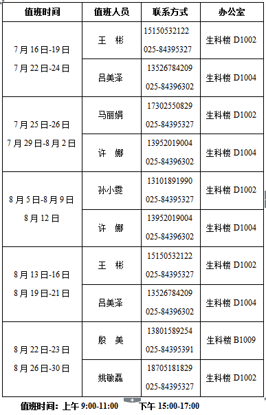 2019年william威廉亚洲官方员工工作办公室暑期值班表