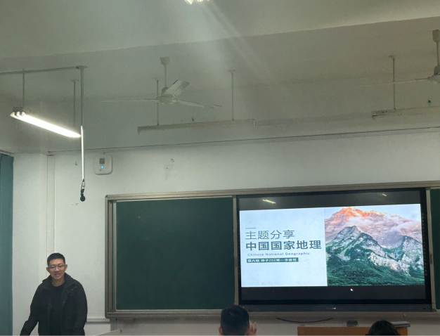 李睿梵同学向大家分享了自己的喜爱的杂志——《中国国家地理》,介绍了各种地理之美,并通过图片展示让大家感受到了中国国家地理的魅力。他建议大家在日常生活中学会“走出去”,发现自然、亲近自然,同时作为农科学子,可以去多多去感受植物的魅力。