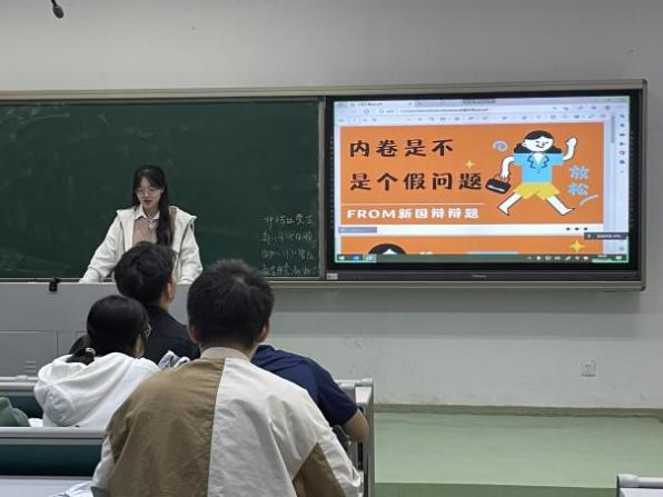 之后卢彦静同学和王剑柘同学进行了主题分享。卢彦静同学分享了如今我们老员工关心的热点问题——内卷,讲述了内卷这个词的由来,并结合一段新国辩的视频分享了内卷的存在是因为“人生无限而资源有限”造成的。王剑柘同学为大家简单介绍了《所以》这本小说,讲了主人翁叶紫一生的悲欢离合,并表达了这本书反映了我们普通人的真实生活状态的观点。