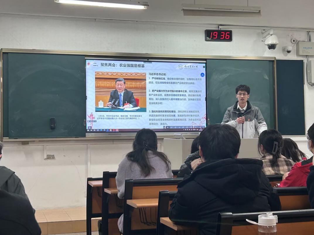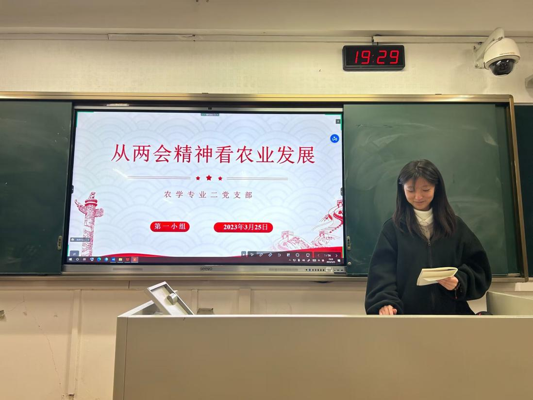 3月25日,农学专业二党支部于教学楼A607召开三月分班讨论,本次分班讨论由党支部书记李昕宇主持,会议主题为“从全国两会精神看农业发展”。