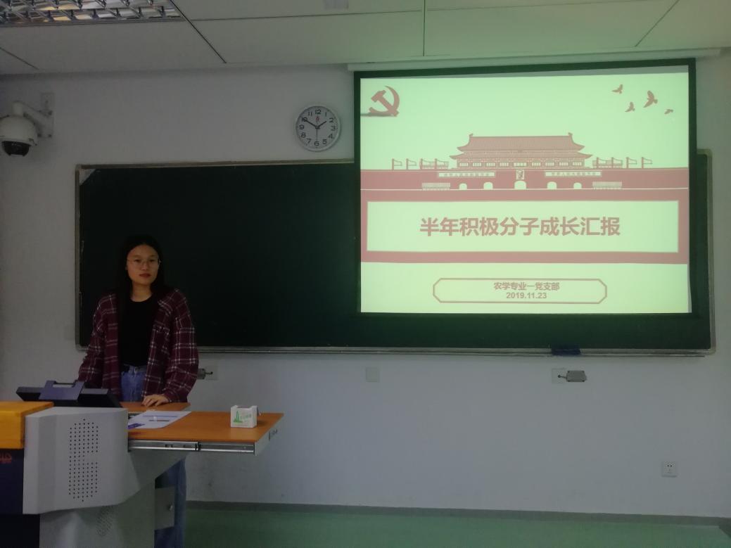 11月23日晚,农学专业一党支部于主楼209组织开展半年期积极分子、预备党员成长汇报会,本次会议由支部书记王潘婷主持,支部全体成员参与大会。