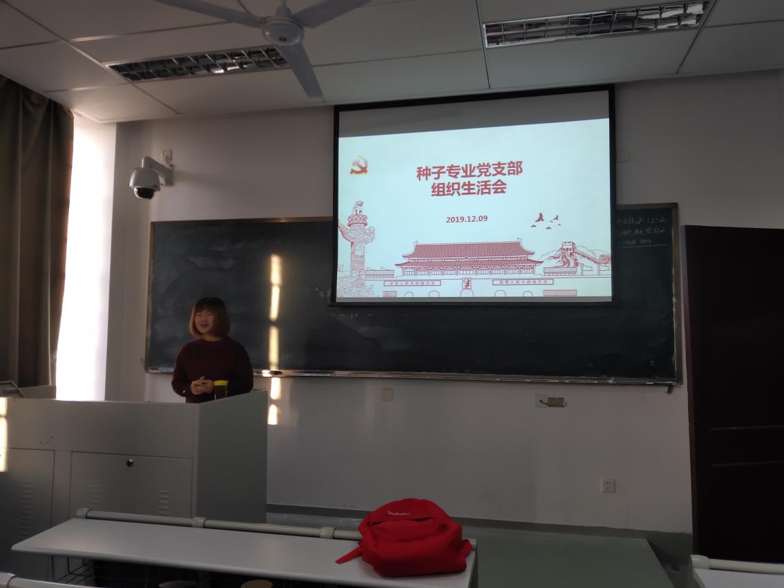 2019年12月9日上午8:00,种子专业党支部全体党员于主楼315召开“不忘初心、牢记使命”主题教育组织生活会,本次会议由种子专业党支部支部书记马艳琴主持。