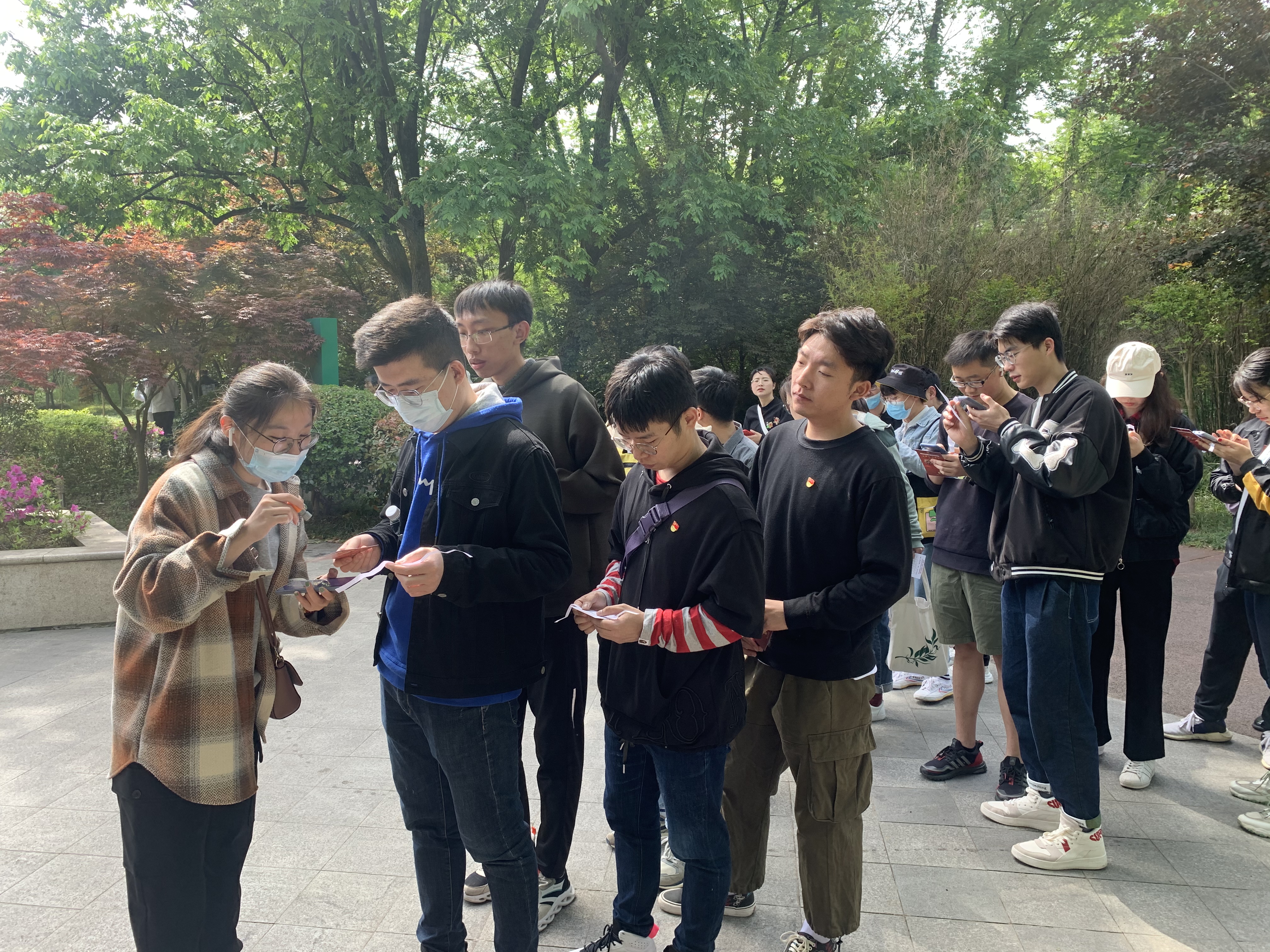 2021年是中国共产党成立100周年,为贯彻落实习近平总书记在党史学习教育动员大会上提出的重要指示精神,引导同学们深刻铭记中国共产党百年奋斗的光辉历程,4月17日上午,william威廉亚洲官方分党校、团委、研究生会举办了“走绿道,学党史”活动。活动将走绿道和党史知识竞答融为一体,从中山陵绿道起点到流徽榭,安排10个答题站点,每个站点分别由10个研究生党支部设置建党百年来每10年的相关知识,同学们可以在答题站点抽取不同分值的题目作答,并在积分卡上打卡盖章,最后根据总分进行评比。