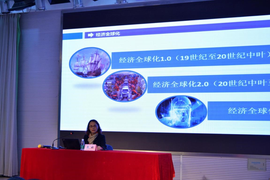 朱娅指出推进“一带一路”建设是习近平深刻思考人类前途命运及中国和世界发展大势所提出的宏伟构想和中国方案,分析了“一带一路”倡议的背景、内容和意义,讲解了中美贸易战的发生及最新进展。最后她以习近平总书记提出的“开放带来进步,封闭必然落后。中国开放的大门不会关闭,只会越开越大”做最后总结。