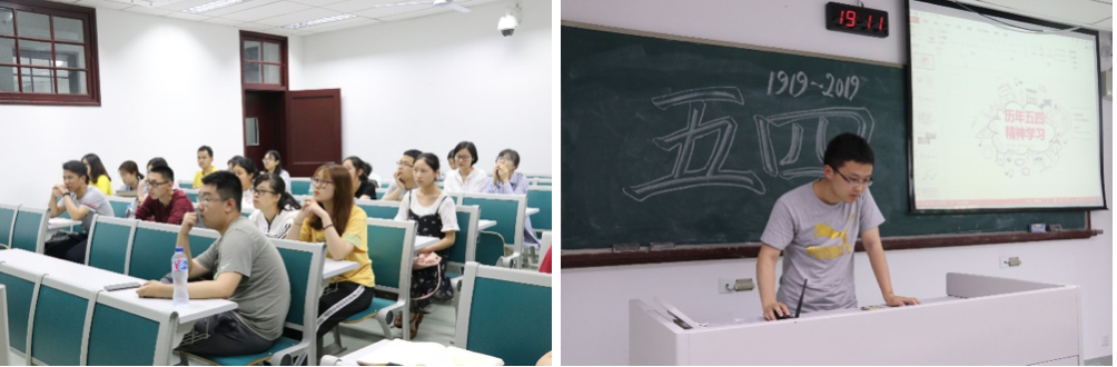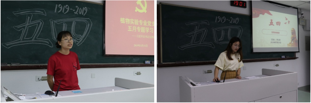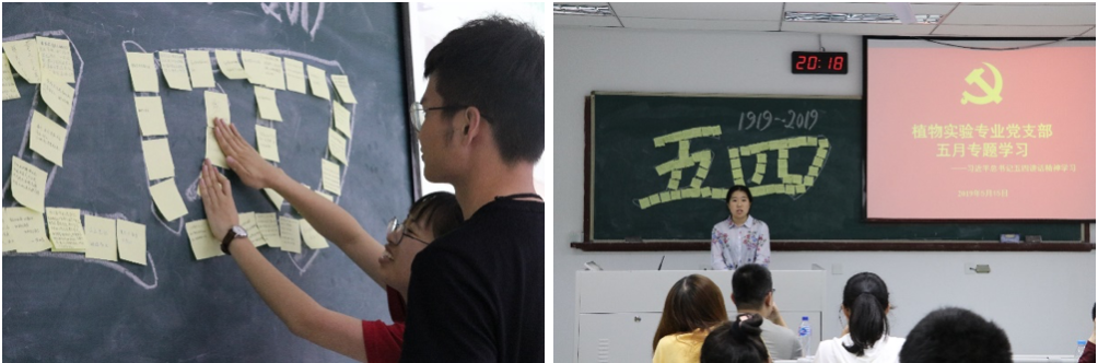 5月15日晚,植物实验专业党支部在主楼230组织举行2019年5月的分班讨论,全体党员和积极分子参与了本次讨论,本次习近平总书记五四讲话主题学习讨论共分为主题讲解、新闻月览、书写感悟等三部分,通过学习五四起源、习近平总书记讲话、五四精神、以及五四青年实例,让支部成员体会到百年五四精神的传承,鼓励青年人担负时代使命。