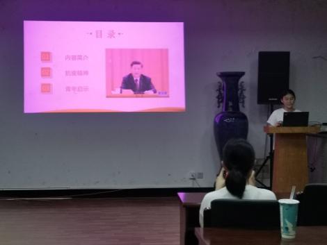 随后,王令涵同学介绍了习近平总书记在大会上的重要讲话精神,并且明确了我们青年一代的时代使命与责任,积极引导同学们砥砺家国情怀,激发使命担当。