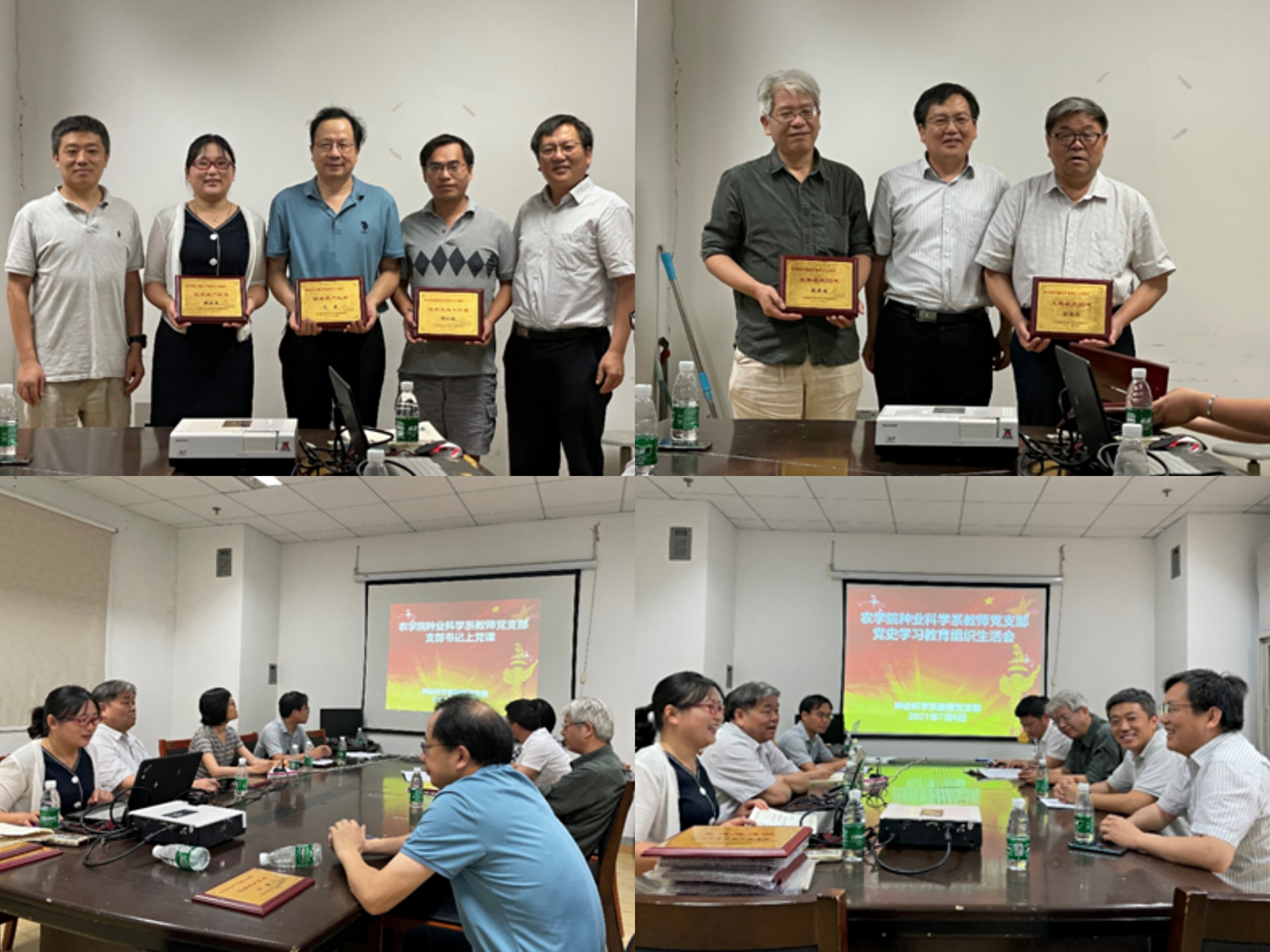 适逢中国共产党百年华诞,本支部以及多位党员获得了七一表彰,戴廷波书记和黄骥副部长为大家颁发了获奖证书和奖牌。本支部获得了学院先进党支部称号、洪德林获得学校优秀共产党员称号和光荣在党30年奖章、刘康和鲍永美获得学院优秀共产党员称号等。戴廷波书记对大家的工作表示了肯定,希望支部再接再厉,进一步做好党建工作和特色活动。