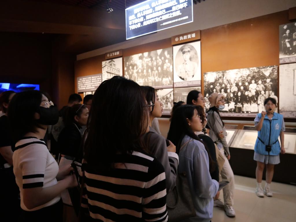 接着,大家集体由北向南进行参观,经过烈士纪念碑、倒影池、纪念桥,最终到达烈士陵园纪念馆。进入馆内,跟随着志愿者讲解员的步伐,一件件文物、一幅幅照片、一个个场景、一段段影像呈现在大家眼前,这些都记录了雨花英烈坚定的信仰信念、炽热的家国情怀。大家认真观看和聆听,思绪万千。