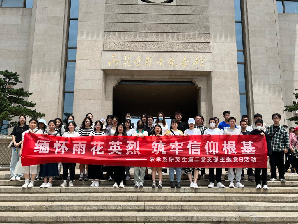 为深入开展学习贯彻习近平新时代中国特色社会主义思想主题教育,牢牢把握“学思想、强党性、重实践、建新功”的总要求,进一步传承革命精神,缅怀为国捐躯的革命先烈,引导青年学子坚定对马克思主义的信仰,强化爱党爱国、艰苦奋斗的意识,农学系研究生第二支部于5月20日上午组织支部全体党员和积极分子前往雨花台烈士陵园,开展以“缅怀雨花英烈 筑牢信仰根基”为主题的党日活动,深切缅怀为中国解放事业牺牲的革命先烈。