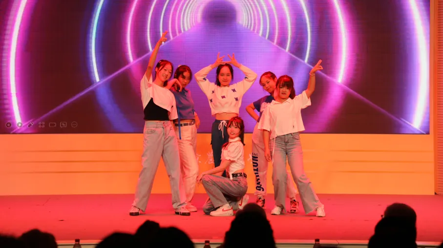 激情四射的开场舞《forever young》点燃了全场的激情,六位朝气蓬勃的小姐姐为大家展现了威廉希尔中文网站平台学子的青春洋溢。