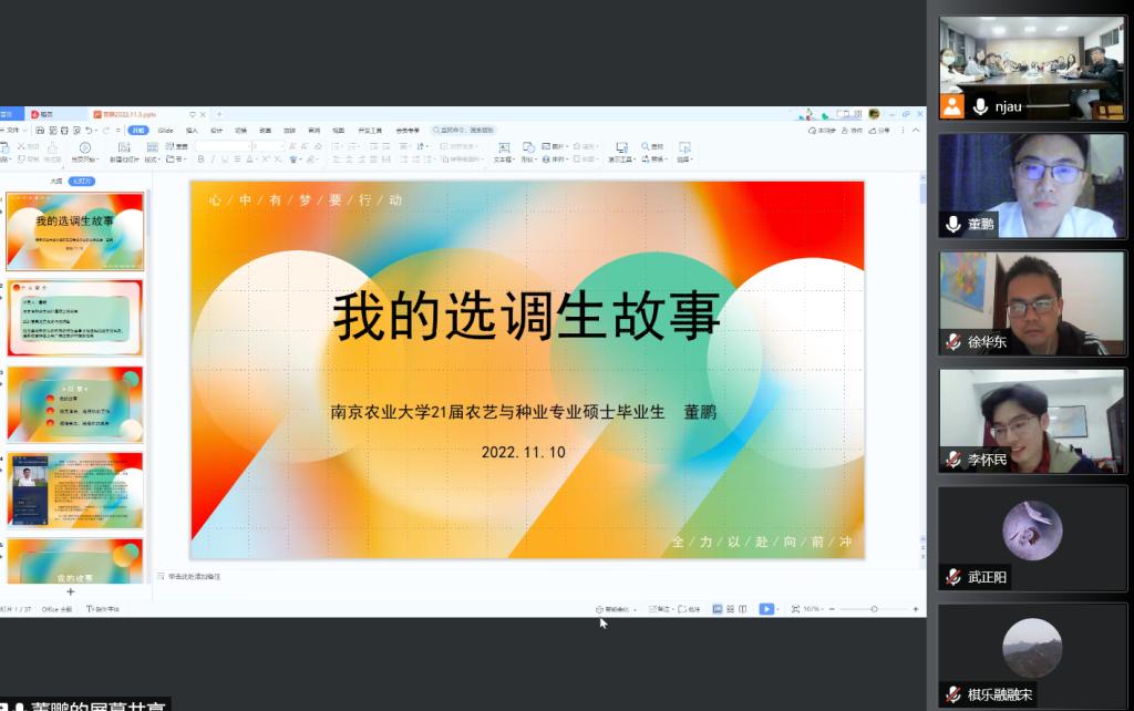 本次沙龙邀请了william威廉亚洲官方2021届毕业生、黑龙江省选调生董鹏,以及2022届毕业生,山东省选调生李怀民、安徽省选调生徐华东、江苏省选调生石仲慧和陈敏珺作为主讲嘉宾。活动由william威廉亚洲官方研究生辅导员陈杰主持,线上线下共100余位研究生、本科生参加了活动。