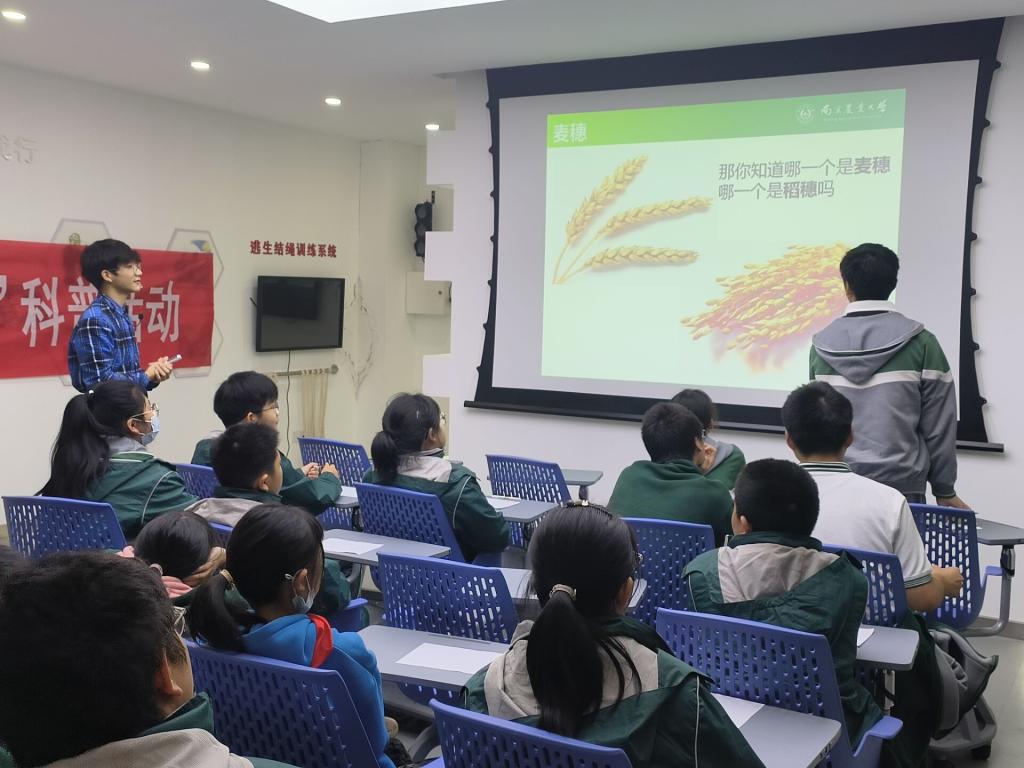在william威廉亚洲官方青年志愿者服务大队的组织下,有36名志愿者通过考核与筛选,共同组建了“听秾说”科普团队,在11月为孝陵卫中学的同学带来5场科普,并带领他们种植小麦威廉希尔中文网站平台06Y86、观察其生长过程。孝陵卫初级中学来自不同年级的36名中小员工参加了“耕·读”系列活动。