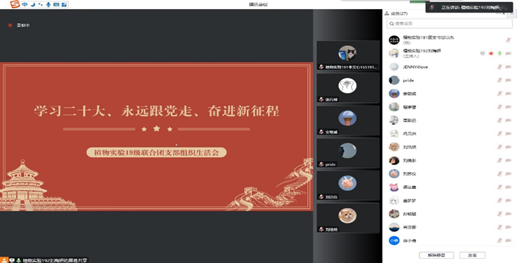 组织生活会在团歌中拉开序幕。活动中,各支部团支书汇报了团支部学习党的二十大精神情况和组织生活会的前期准备情况,带领同学们对习近平总书记在中国共产党第二十次全国代表大会开幕会上的报告、新修订的《中国共产党章程》及习近平总书记在庆祝中国共产主义青年团成立一百周年大会上的讲话进行研读,并开展了团员先进性评议。团支部青年逐一分享学习感悟、交流学习心得。