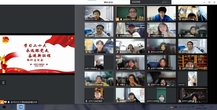 农学221团支部的满祉彤同学分享学习心得:“党的二十大报告提出,‘坚持农业农村优先发展,巩固拓展脱贫攻坚成果,加快建设农业强国,扎实推动乡村产业、人才、文化、生态、组织振兴。’作为农业大学的员工,我们要有农学人的担当,主动肩负起国家粮食安全的重任,承担起实现中华民族伟大复兴的中国梦的责任。在农业现代化中,种子是‘芯片’,我们农学人既要进行基础性研究,也要紧跟科学前沿,努力取得关键领域的技术突破,打牢种质资源基础,打破‘洋种子’困境,将中国人的饭碗牢牢掌握在自己手中。”