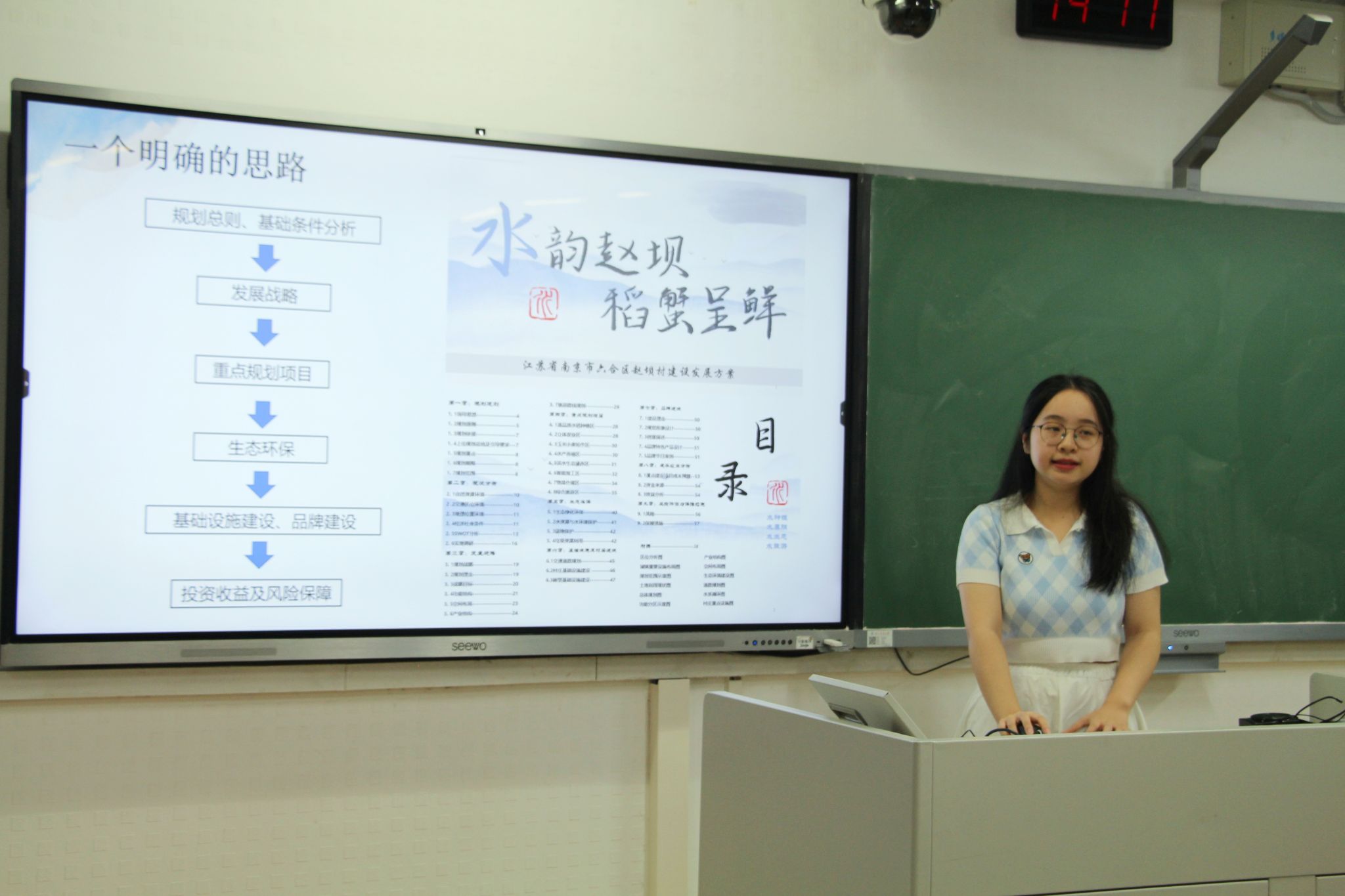 经验分享阶段,李童节从赛前的团队分工,初赛的村庄规划、决赛的展示答辩,以参赛者的角度分享了自己参赛经历,强调团队应注意村庄规划设计合理性,不得随意更改农田类型,为同学们提供了村庄基本信息查阅的方法与途径。荆子涵同学从团队建设、合理规划、策划书书写、PPT制作四个方面进行了展示和分享。强调预算项目分配的重要性,区域的产业建设应注重长远发展,能够落实执行。