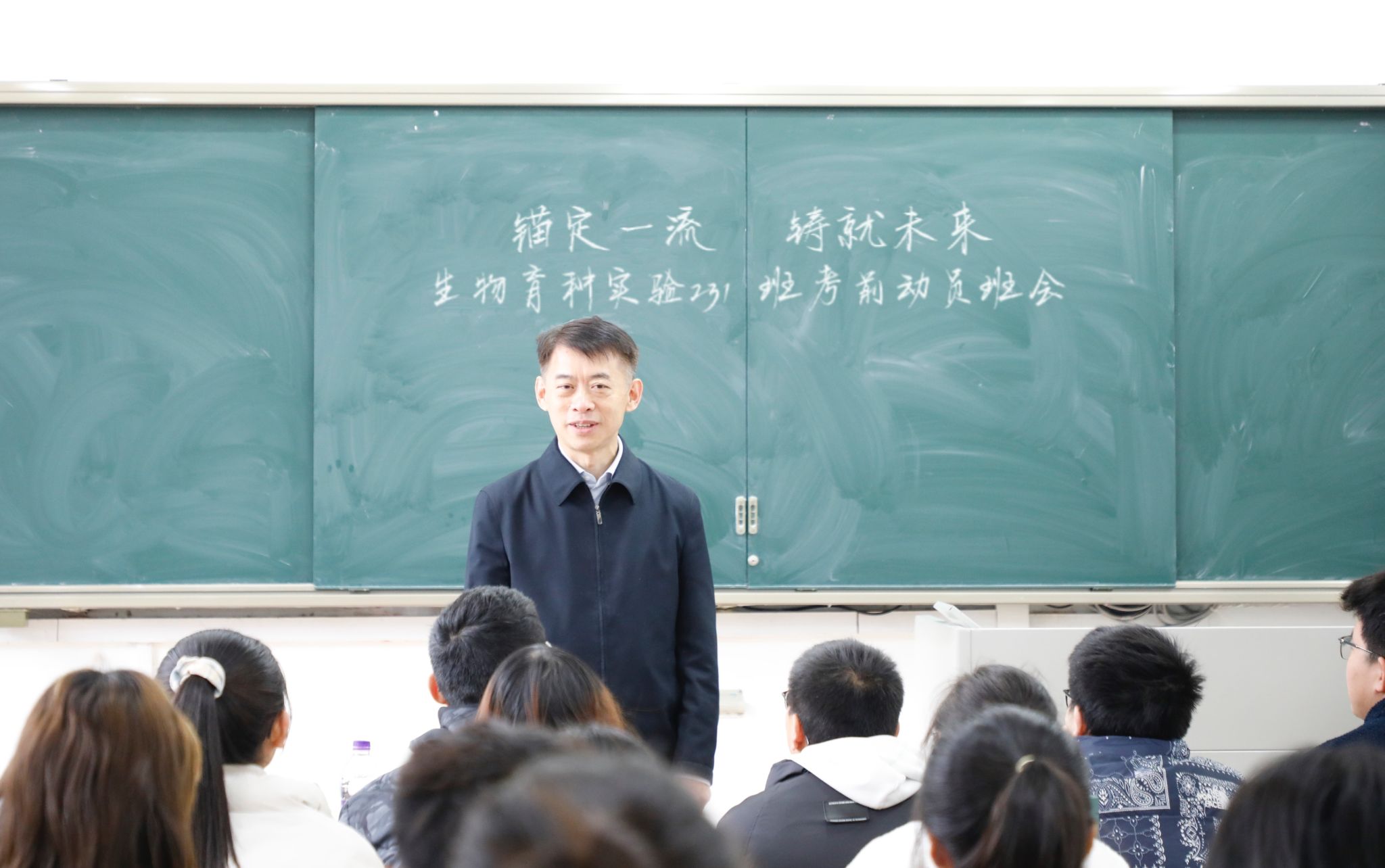 “锚定一流,铸就未来。”王春春就生物育种实验班的初建提出了班级建设方向的要求与指引。王春春指出,学校创建生物育种实验班,是对国家种业振兴方针的积极响应。2023年中央“一号文件”提出要全面实施生物育种重大项目,加快生物育种产业化步伐,学校高度重视生物育种实验班的建设,为国家输送知农爱农的生物育种方向青年人才。王春春勉励同学们牢记争先意识,树立远大目标,让奋斗成为青春的主旋律,让班集体走在全校员工的最前列。