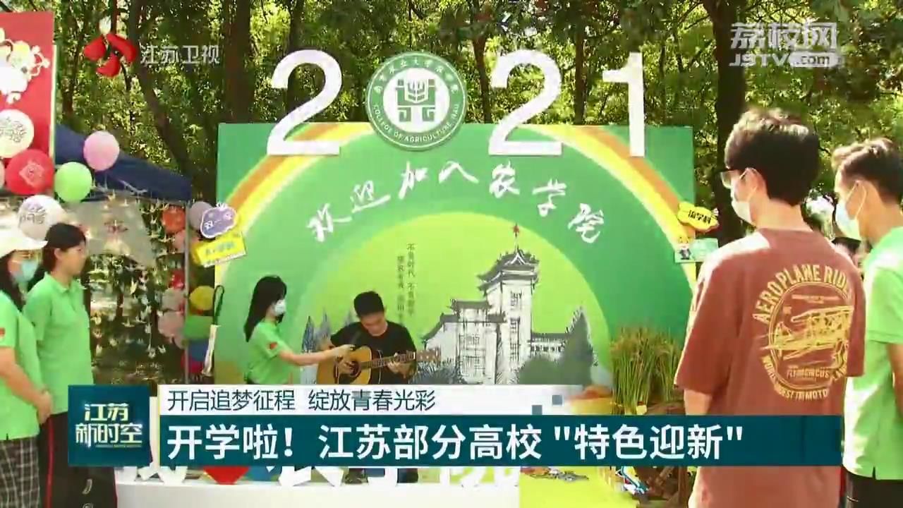 江苏台记者王尧说:“这里是威廉希尔中文网站平台。为了迎接新生开学,学院们结合各自的专业特色搭建了10多个‘迎新帐篷’,推出了精彩纷呈的迎新活动。”