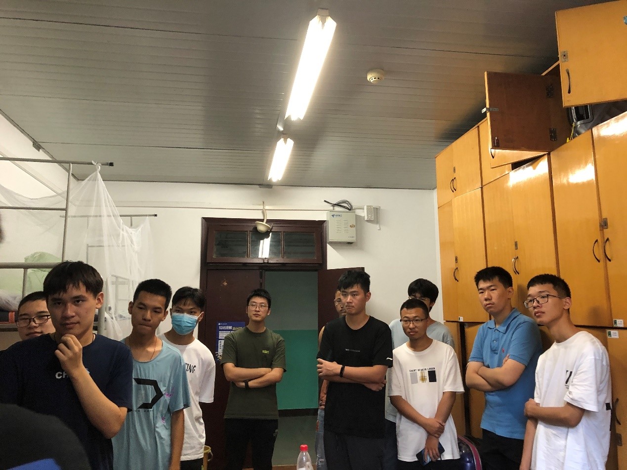 内务指导人员由退伍同学及20级样板宿舍舍长组成,一同深入新生宿舍。首先对新生宿舍卫生整体情况做出评价,然后从被褥叠放、桌面整洁、衣柜整理、床下物品摆放等各个细节方面一一进行示范,边操作边讲解。尤其是在叠被褥的示范过程中,一床平铺的被褥经过量、掏、擀、折、压等过程,叠成了有棱有角的 “豆腐块”,每一步都是环环相扣的,同学们听的十分认真。整个过程中,新生们都表现得积极主动,跃跃欲试。