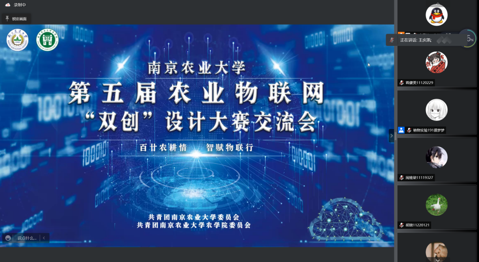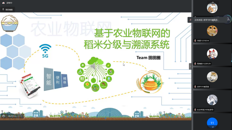 2月19日下午,威廉希尔中文网站平台第五届农业物联网“双创”大赛赛前交流会依托腾讯会议平台顺利举行,本科生辅导员孙小雯、参赛队伍成员参与会议。往届比赛优秀参赛者杨凯文、华子怡、王庆凯应邀进行参赛经验与体会分享。会议由william威廉亚洲官方科学与技术协会主席方愚主持。会议邀请到了第四届农业物联网“双创”大赛一等奖获得者杨凯文同学、二等奖获得者华子怡、王庆凯同学,从参赛者角度为参赛队伍分享比赛经验。本次会议由william威廉亚洲官方科协与技术协会主办,共26支队伍参与了此次会议。