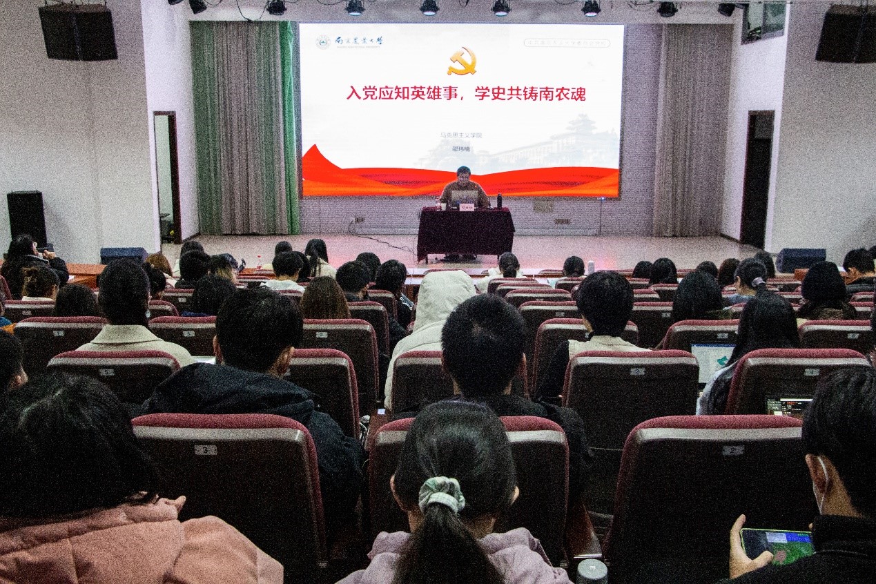 12月15日下午,william威廉亚洲官方在教四楼报告厅举办专题教育党课。马克思主义学院教师邵玮楠作题为“入党应知英雄事,学史共铸威廉希尔中文网站平台魂”的专题报告。william威廉亚洲官方辅导员、分党校学员代表参加了此次党课。
