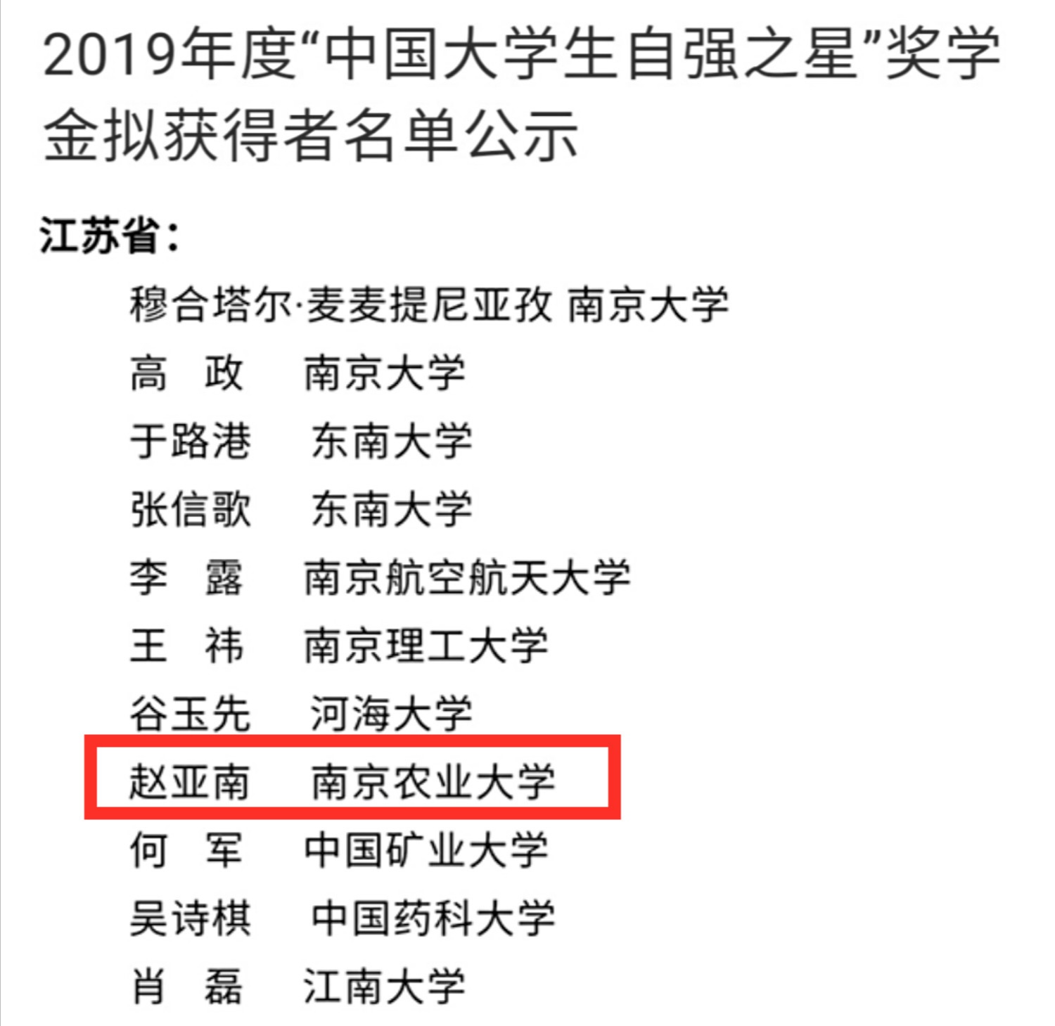喜报!公司赵亚南同学荣获2019年度“中国老员工自强之星”奖学金