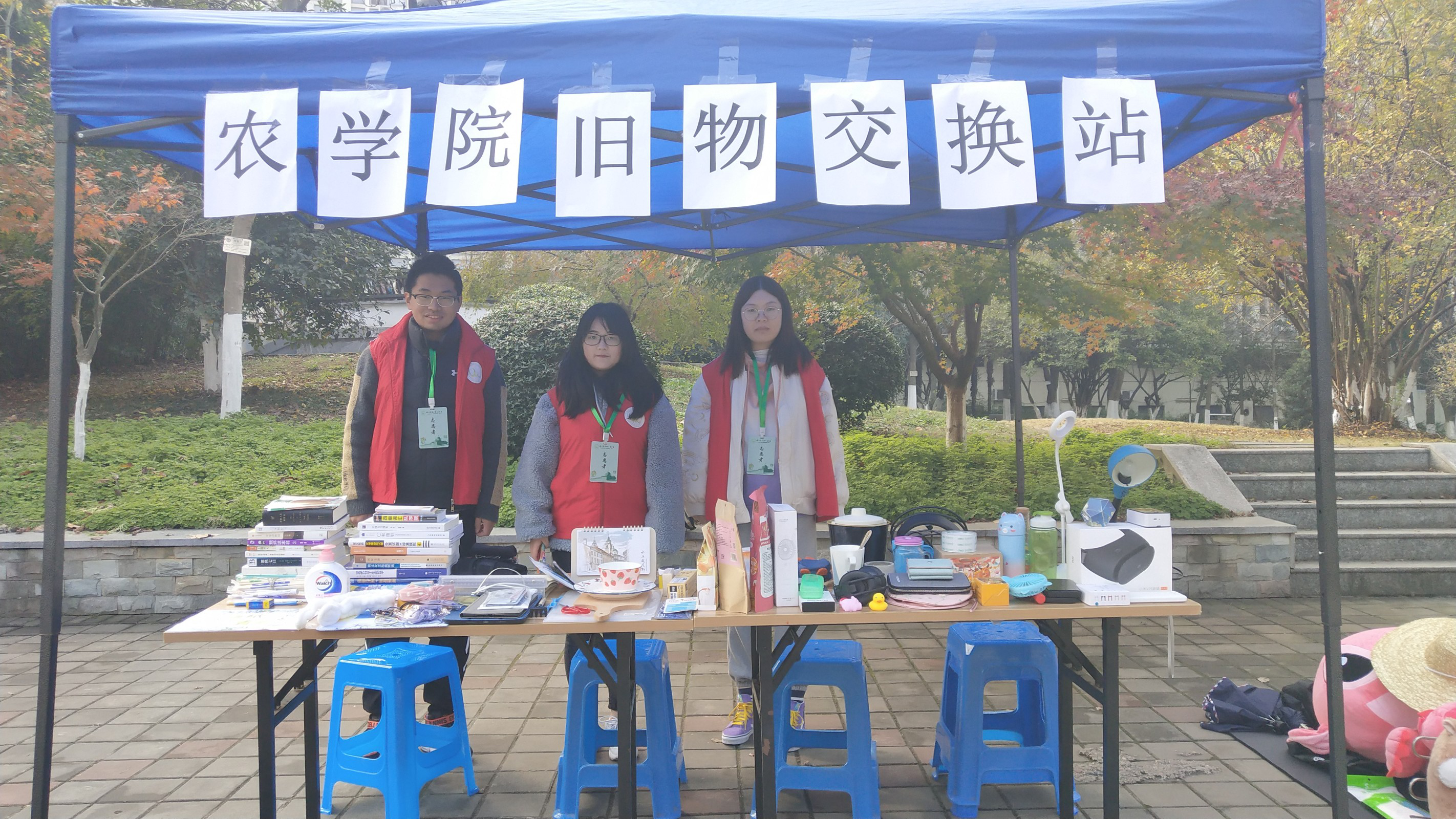 11月29日上午九点半,第一班的志愿者开始搭帐篷,将旧物摆好,为一天的交换活动做好充分的准备。