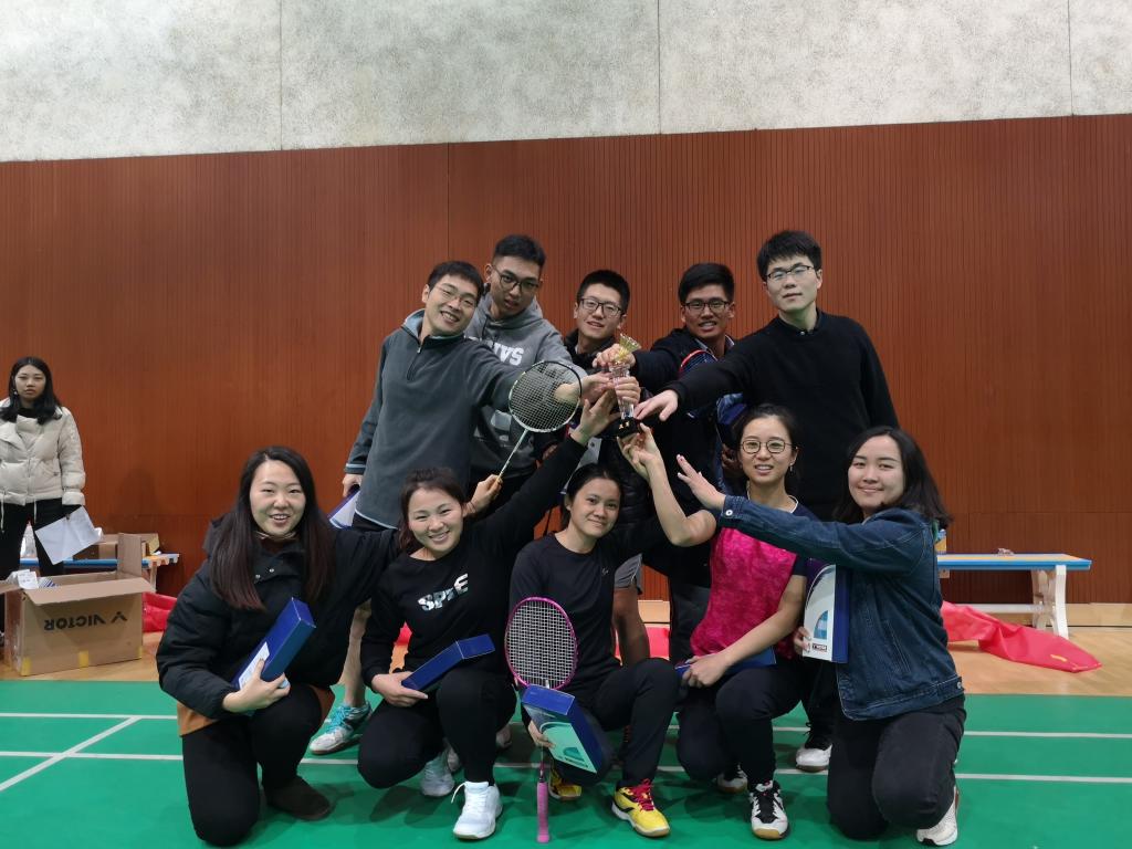 12月23日9:30,威廉希尔中文网站平台2018年“神农杯”研究生羽毛球赛在体育馆三楼羽毛球场举行。公司研究生羽毛球队派出10名参赛队员,领队由博士生邵宇航担任,肖晏嘉担任教练。经过各环节激烈角逐,最终公司研究生以微弱劣势,获得本次校“神农杯”羽毛球赛亚军。